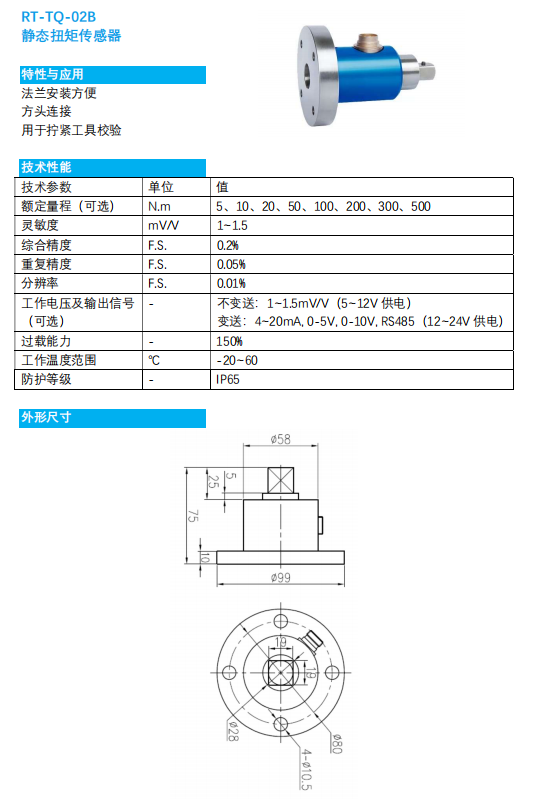 RT-TQ-02B 靜態(tài)扭矩傳感器