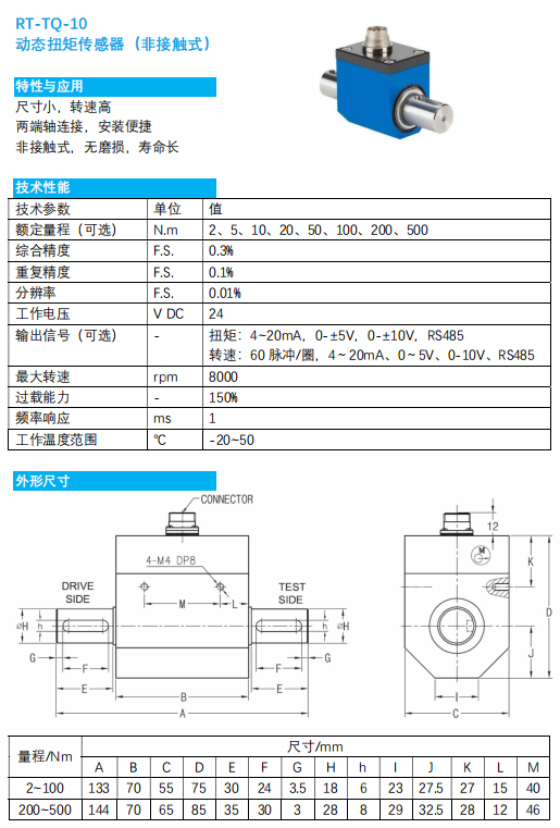 RT-TQ-10動(dòng)態(tài)扭矩傳感器(非接觸式)