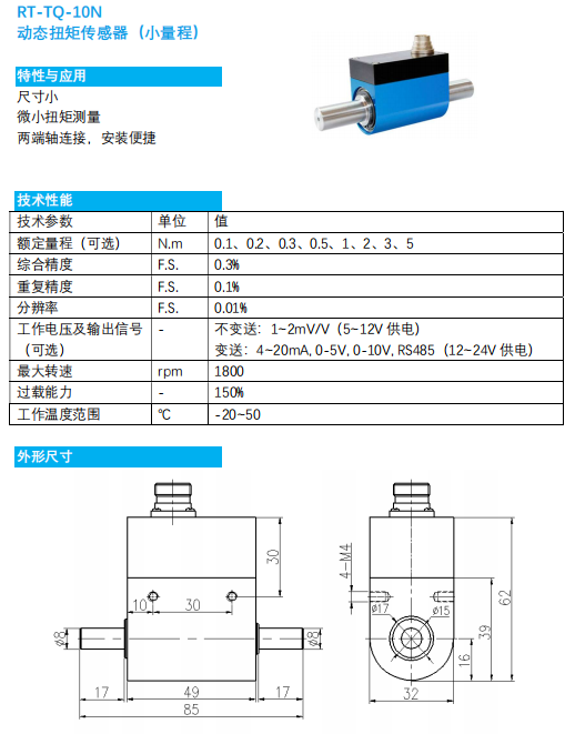 RT-TQ-10N動(dòng)態(tài)扭矩傳感器(小量程)