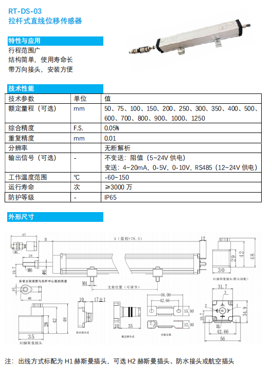 RT-DS-03拉桿式直線位移傳感器
